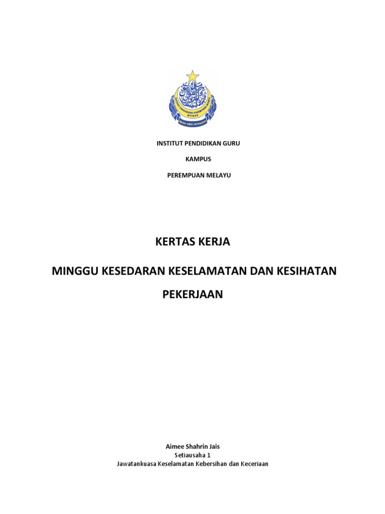 Kertas Kerja Minggu Kesedaran Keselamatan Dan Kesihatan Pekerja