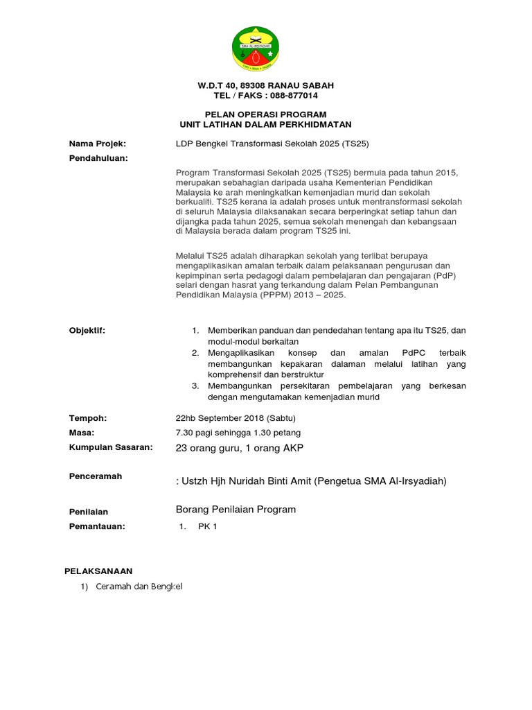 Contoh Kertas Kerja Program Ts25