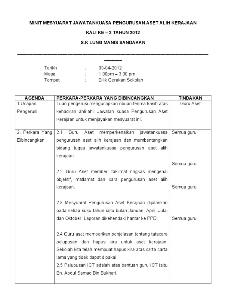 Doc Contoh Format Minit Mesyuarat Wawa Wawa Academia Edu