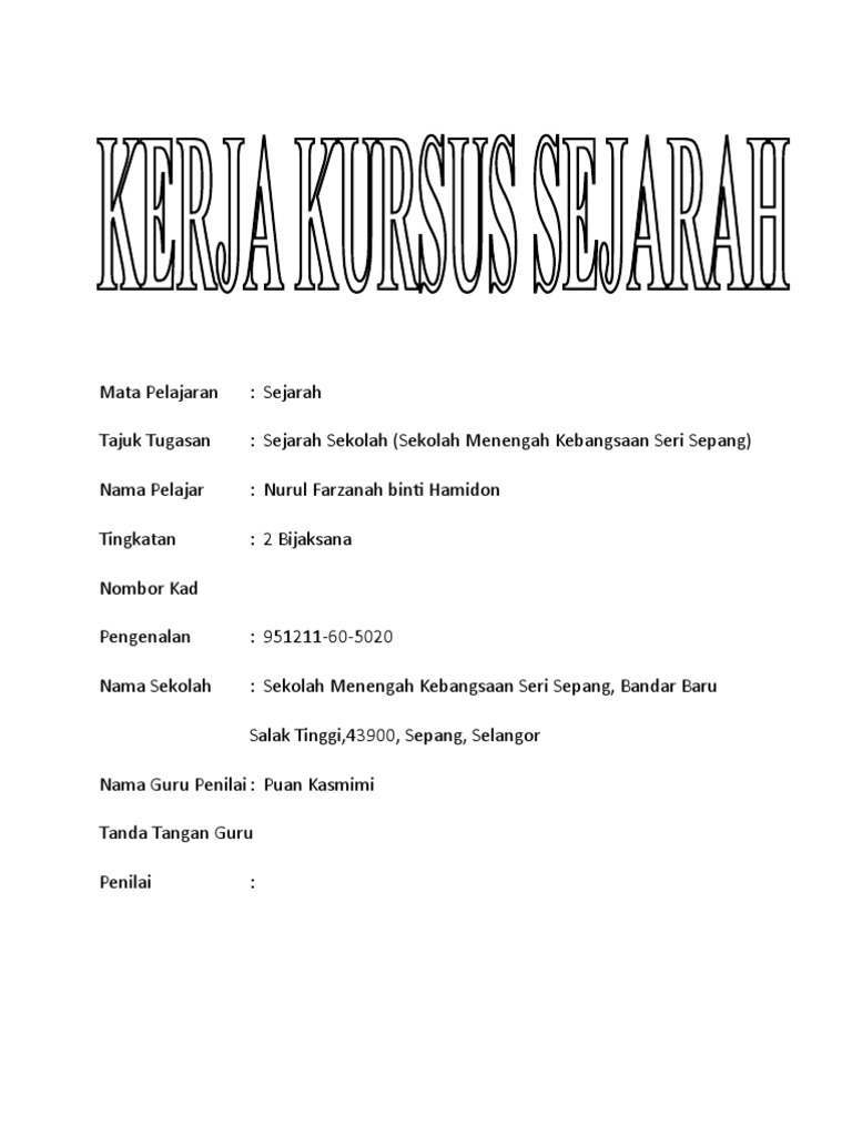 Contoh Kerja Kursus Sejarah Pt3 2019 Paling Tepat Save