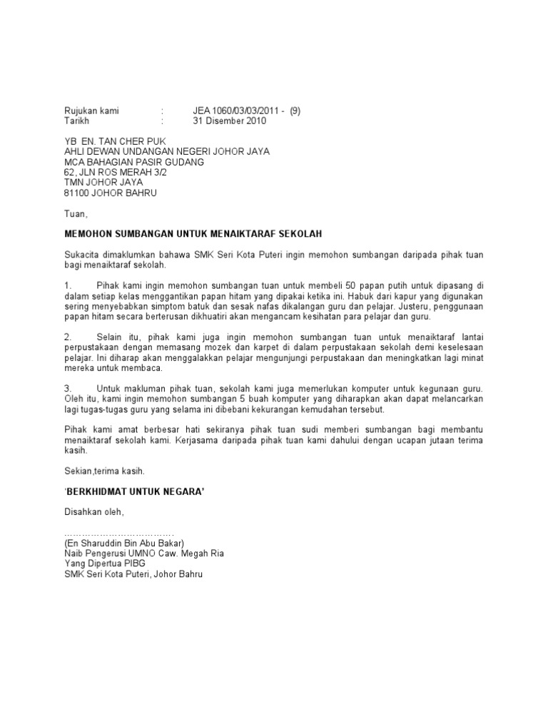 Contoh Surat Rasmi Memohon Sumbangan Wang Surat Rasmi 1