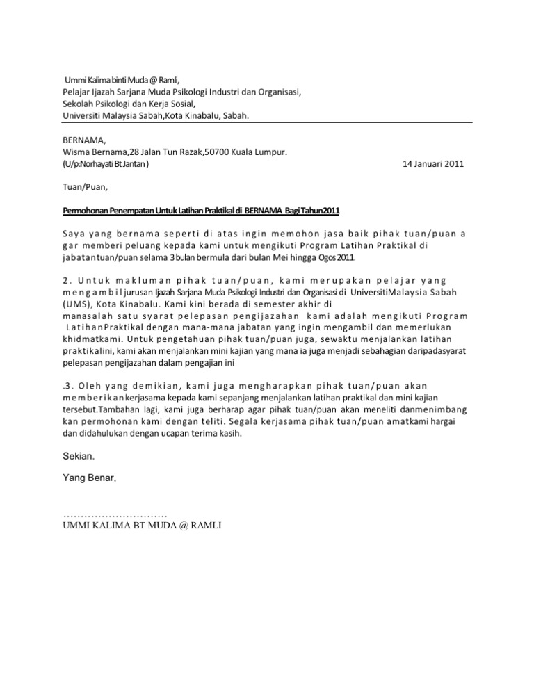 Surat Rasmi Untuk Kerja Surat Rasmi U