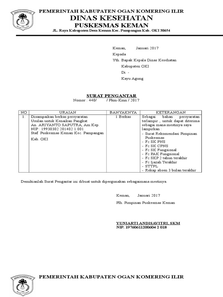 Contoh Surat Pengantar Kenaikan Pangkat Pns