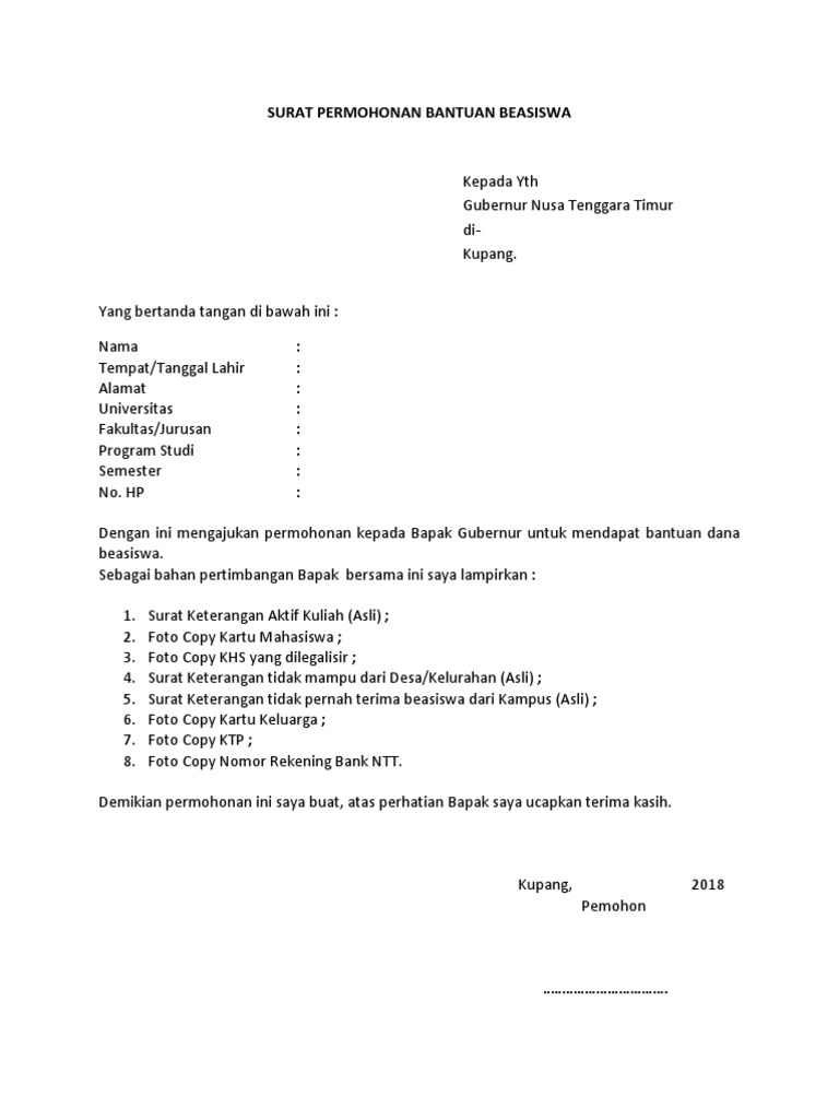 Surat Permohonan Bantuan Beasiswa 1