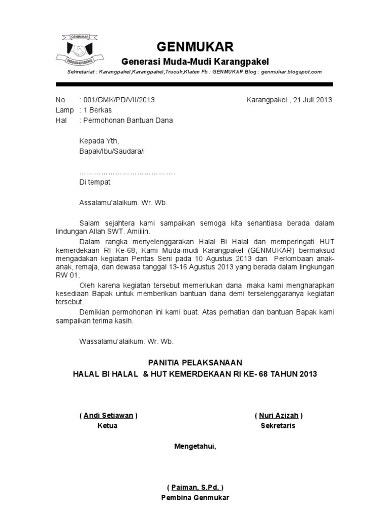 Contoh Surat Dan Proposal Permohonan Bantuan Dana Hut Ri Serbabisnis