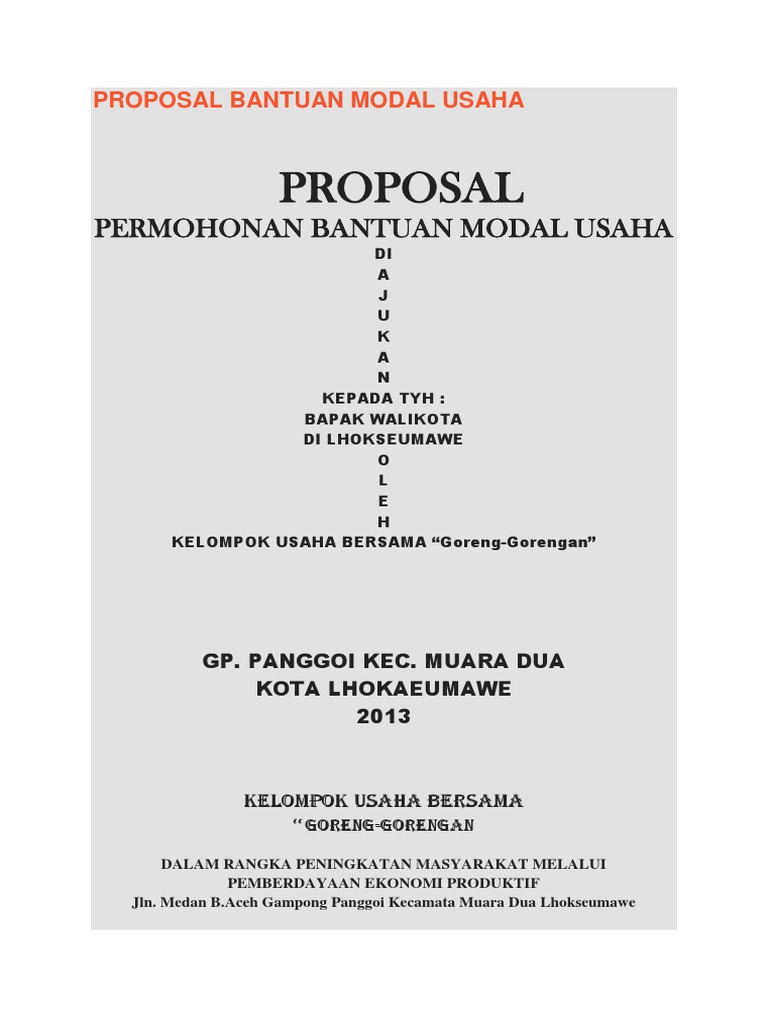 Doc Proposal Permohonan Bantuan Modal Usaha Habib Prakoso Academia Edu