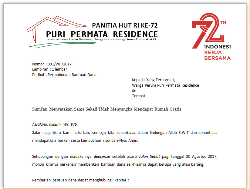 Contoh Surat Dan Proposal Permohonan Bantuan Dana Hut Ri Serbabisnis