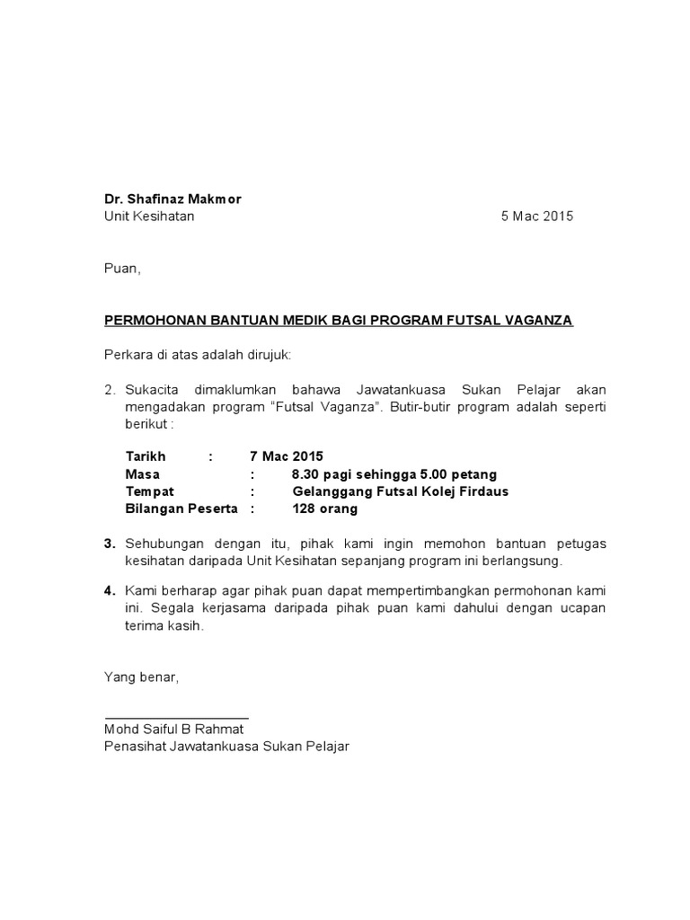 Contoh Surat Rasmi Permohonan Bantuan Peralatan Bridalbiot