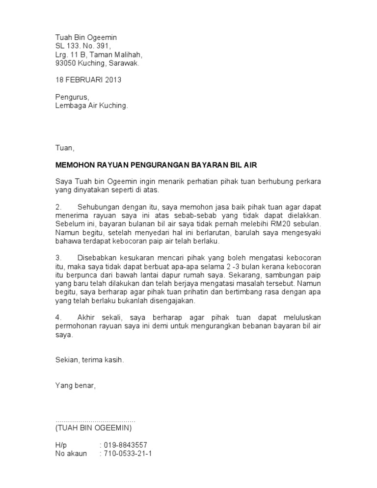 Contoh Surat Rasmi Permohonan Pengurangan Bayaran Rasmi V