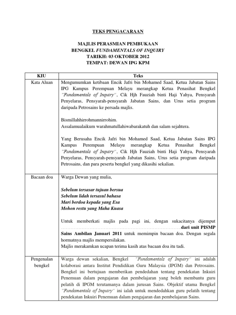 Teks Pengacara Majlis Perasmian Penutupan Program