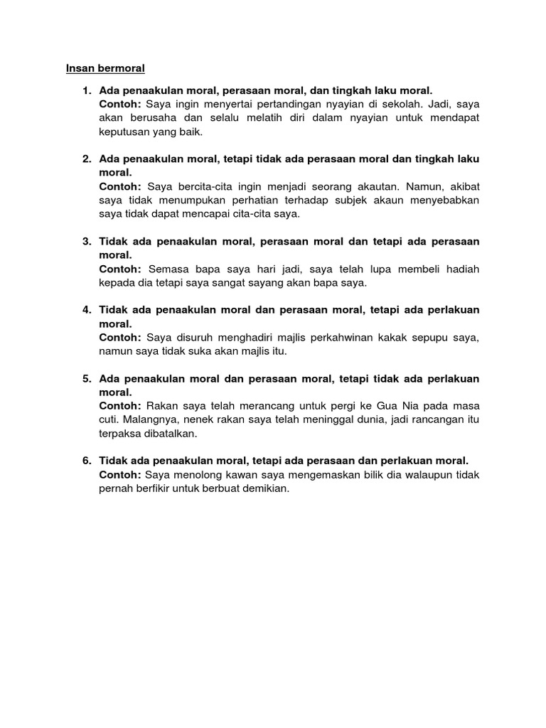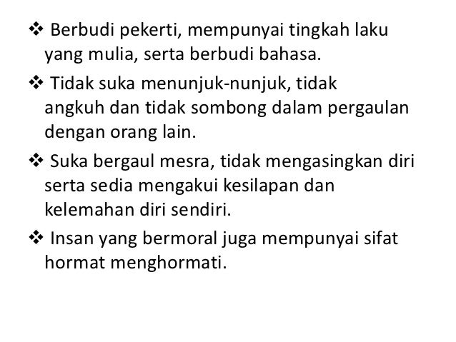 Contoh tingkah laku bermoral. Nilai moral berkaitan dengan tingkah laku manusia human tentang hal baik buruk. Liliana tedjosaputra menyebut bahwa seharusnya tingkah laku manusia di dalam masyarakat itu dijalankan sesuai dengan prinsip negara kita yakni negara hukum berdasarkan pancasila.