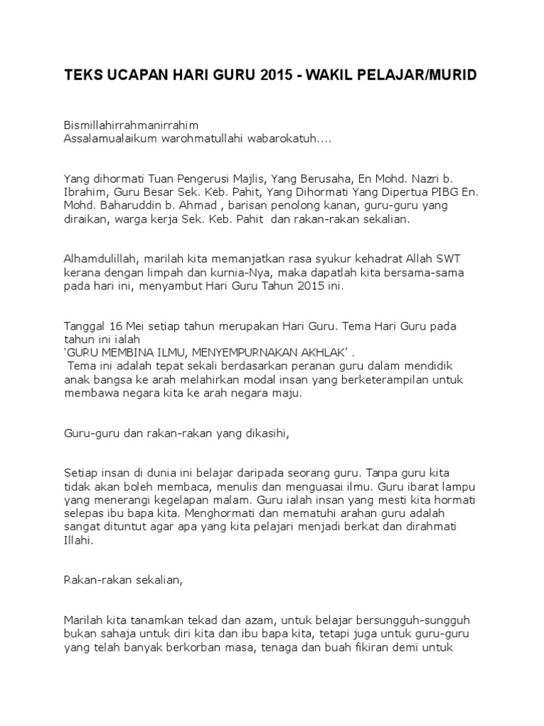 Jika ingin yang lebih banyak baca juga. Author dennis posted on august 14 2019 august 14 2019 categories ucapan pengerusi majlis tags tek ucapan pengerusi majlis ucapan pengerusi majlis. Ucapan selamat hari guru nasional. Engkau telah mampu membantu saya dalam menyadarkan diri siapa sih diriku ini sebenarnya.