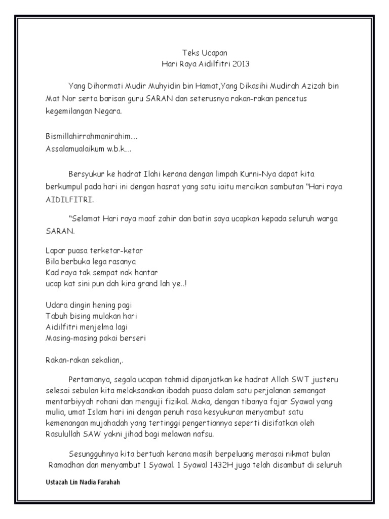 Teks Khutbah Hari Raya Aidilfitri 2020 Bacaan Di Rumah The Inspirasi