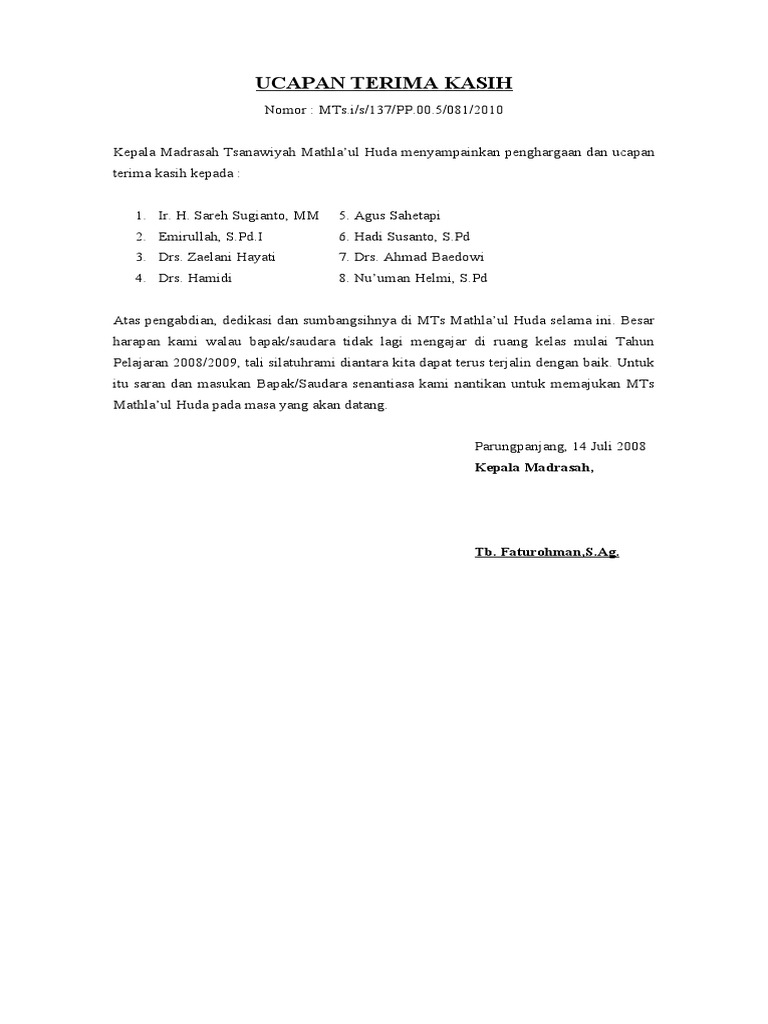 Contoh Surat Ucapan Terima Kasih Portal Ilmu Com