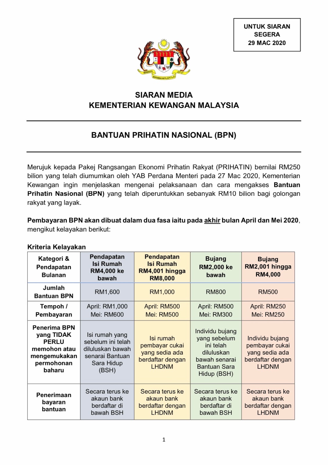 Cara Mohon Bantuan Prihatin Nasional Bpn Semakan 1 April 2020 Geng Borak