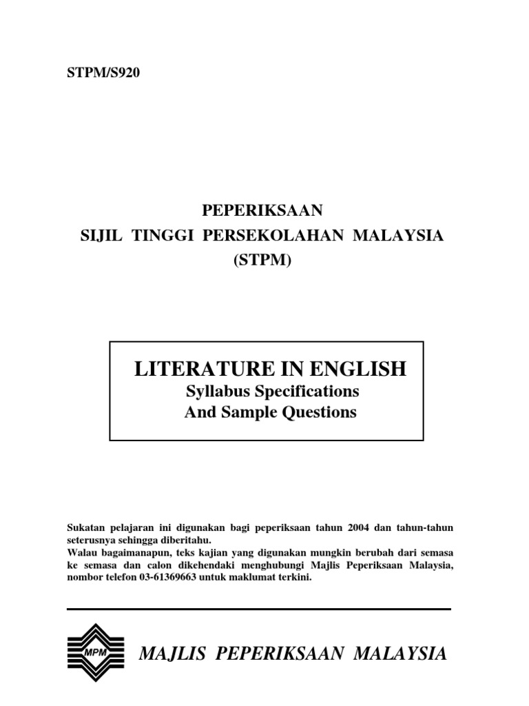 Sukatan Pelajaran Literature In English Stpm Pdf Document