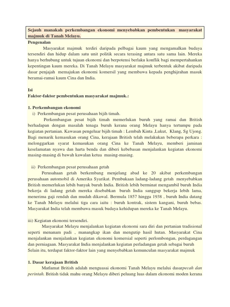 146495949 Masyarakat Majmuk Dasar Inggeris Di Tanah Melayu 1 Doc Sejarah Sosio Ekonomi Tanah Melayu 1900 1957 2013 1 0 Pendahuluan Sebelum Tahun Course Hero