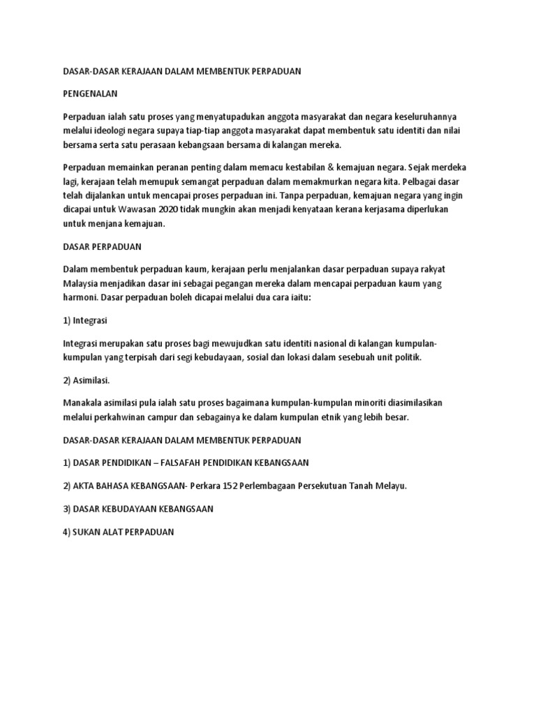 Dasar Kerajaan Dalam Membentuk Perpaduan Pengajian Am Pdf Document