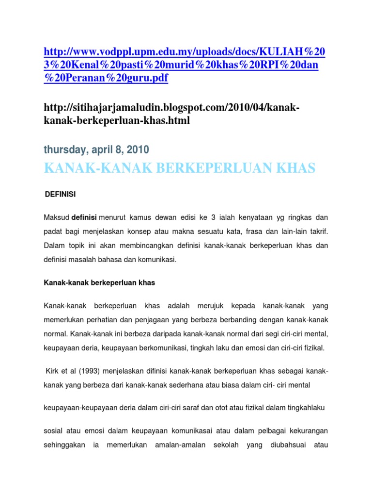 Ciri Ciri Kanak Kanak Berkeperluan Khas Pdf Document