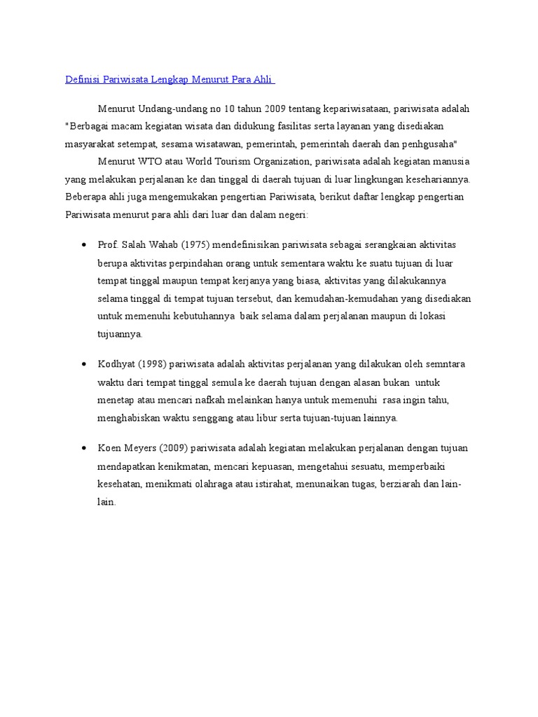 Definisi Pariwisata Lengkap Menurut Para Ahli