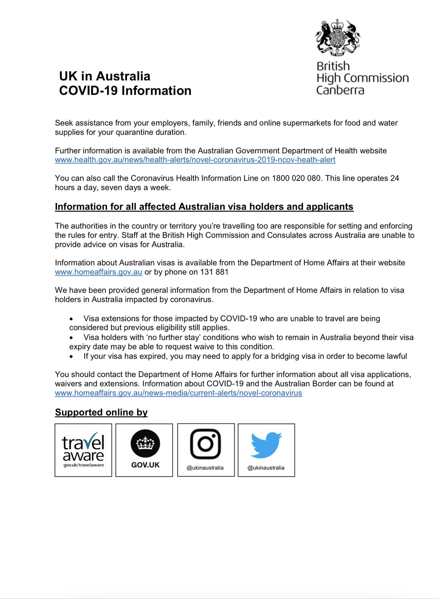 Uk In Australia On Twitter We Know That The Recent Travel Restrictions Have Caused A Lot Of Uncertainty For People Here Is Our Latest Advice On Travelrestrictions Visas And Selfisolation The