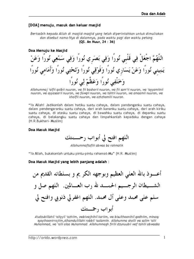 Doa Masuk Dan Keluar Masjid Arab Indo Terjemahan