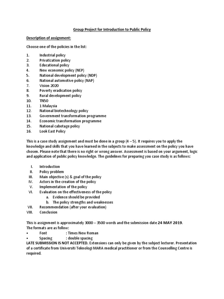 2019 Group Project For Introduction To Public Policy Docx