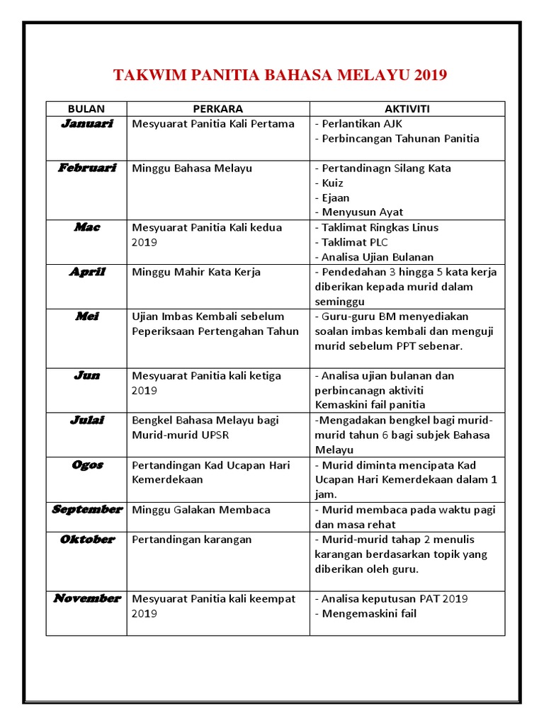 Takwim Bm 2019