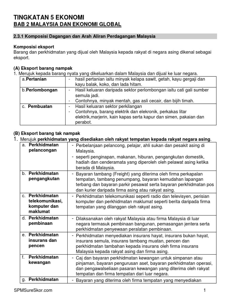 Tingkatan 5 Ekonomi Bab 2 Malaysia Dan Tingkatan 5 Ekonomi Bab 2 Malaysia Dan Ekonomi Global Pdf Document