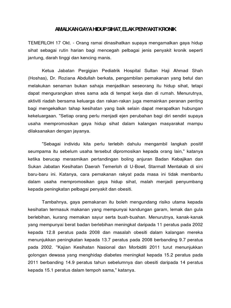 Cth Karangan Gaya Hidup Sihat 1