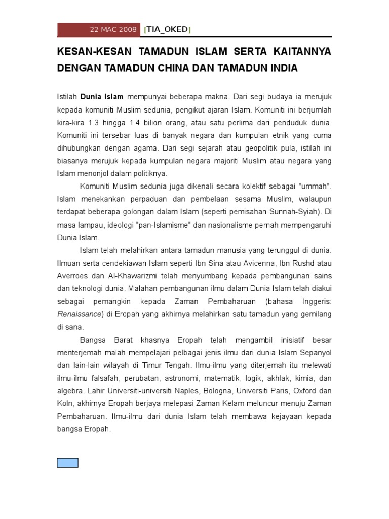 Kesan Tamadun Islam Serta Kaitannya Dengan Tamadun India Dan Cina