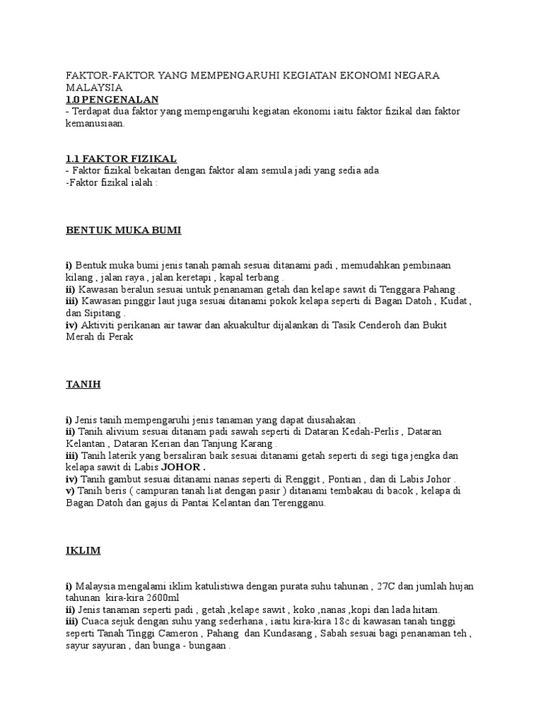 Faktor Fizikal Faktor Kemanusiaan Faktor Faktor Yang Mempengaruhi Kegiatan Ekonomi Malaysia