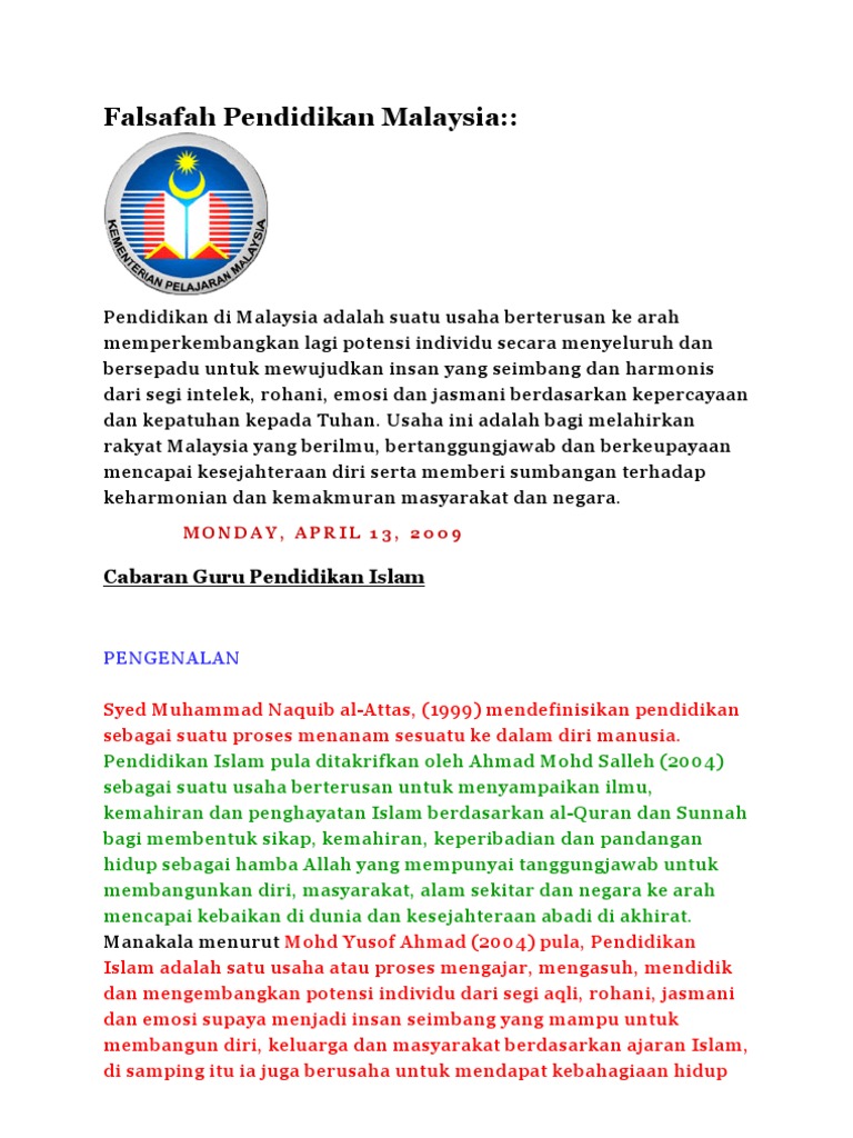 Definisi Falsafah Pendidikan Islam Dan Falsafah Pendidikan Di Malaysia Supyan Hussin S Blog